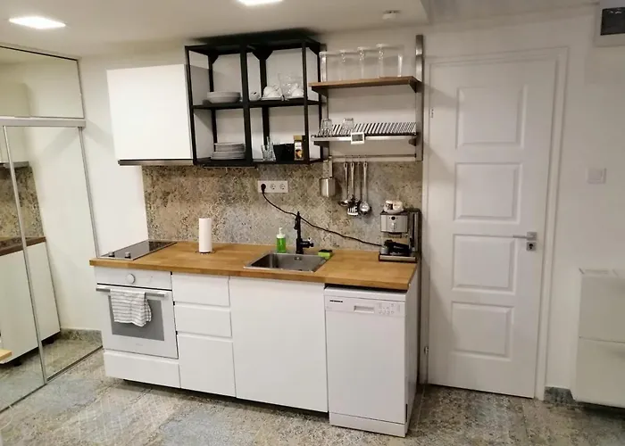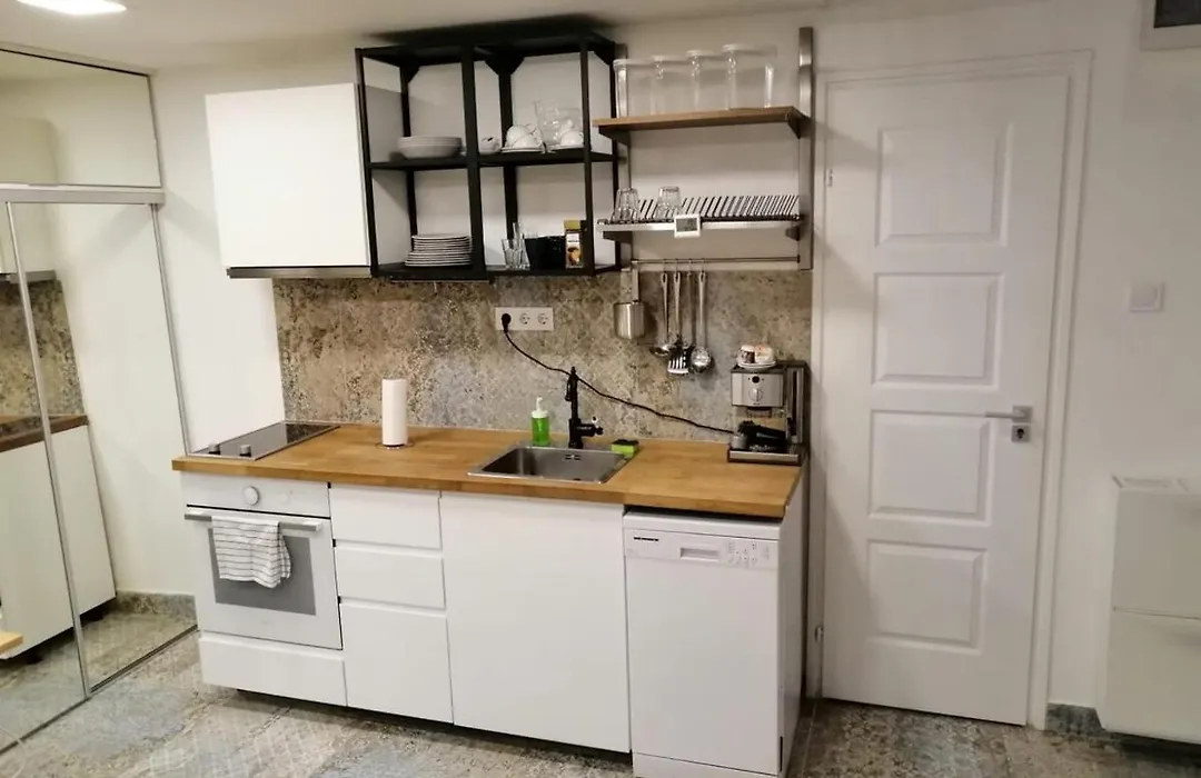 A Cozy New Studio With Free Parking Place In Garage a további kényelem érdekében a felszerelt konyhában lehetőséget kínál ételek elkészítésére. Az ingatlan továbbá közelében fekszik az II. Janos Pal papa ter metróállomástól.